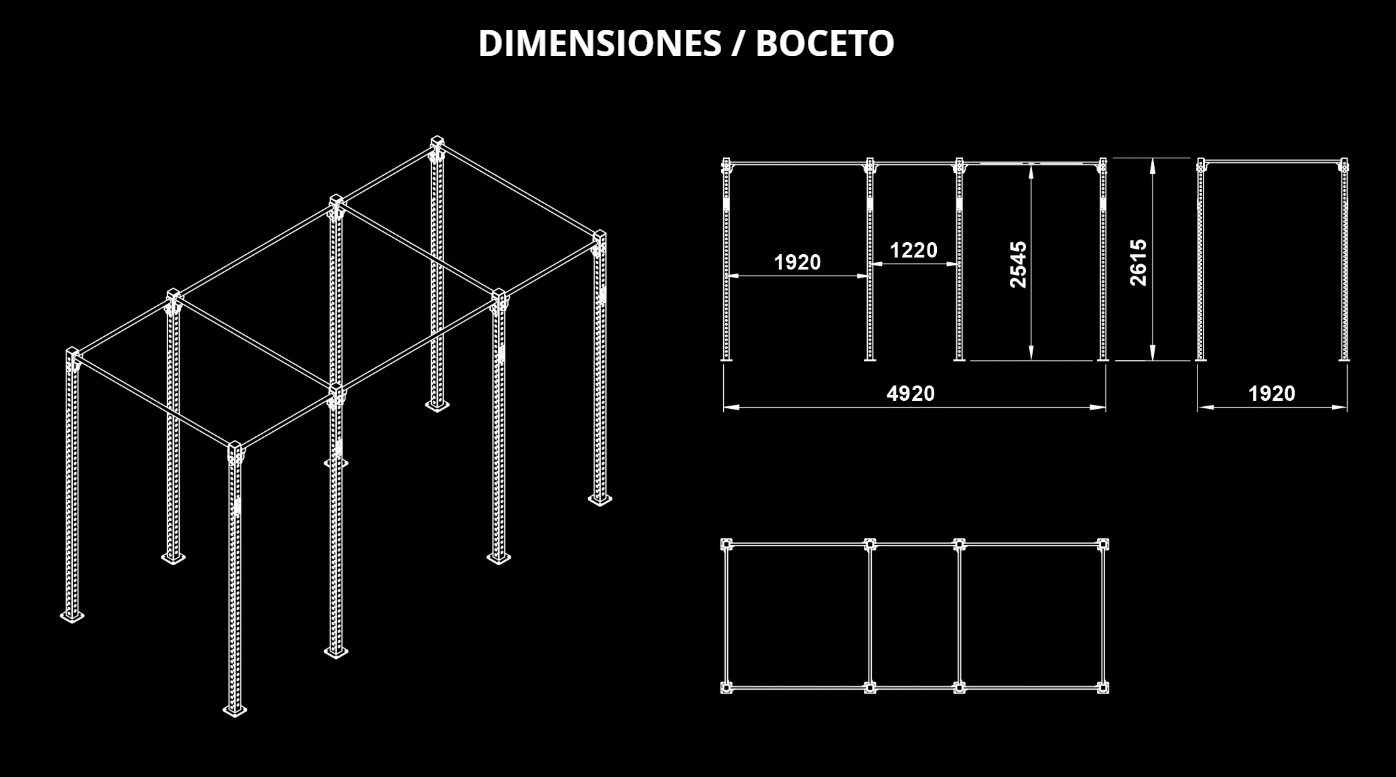 + Se puede ampliar con postes y barras de dominadas si es necesario.