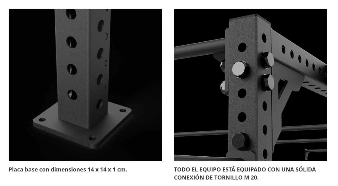 + Se puede ampliar con postes y barras de dominadas si es necesario.