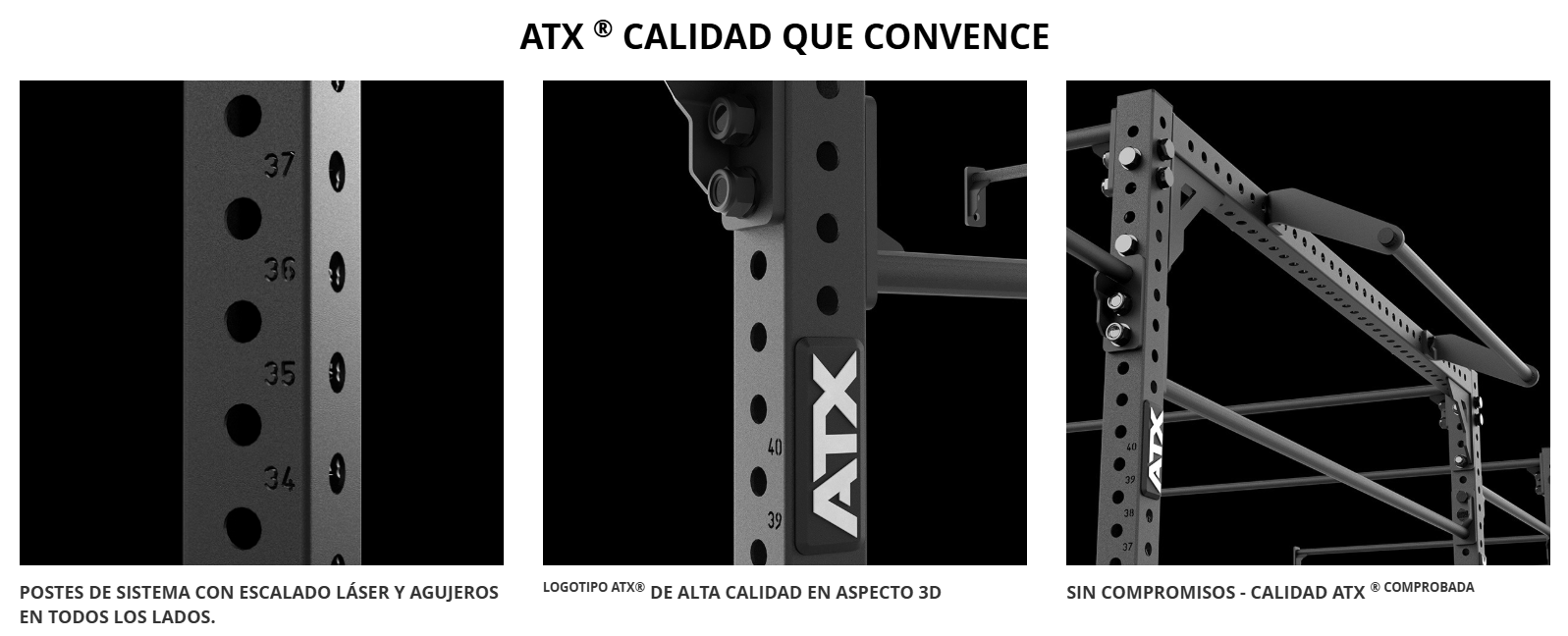 El ATX® WALL RIG Sector 4 se monta en la pared y ofrece máxima estabilidad gracias a sus marcos de base ATX® perforados y sólidas conexiones atornilladas. Requiere atornillarse al suelo. Su construcción de acero de alta calidad con acabado en pintura en polvo garantiza una larga vida útil, incluso con un uso intensivo.